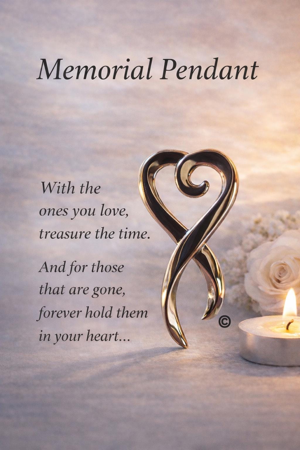 Memorial Heart Ribbon Charm/Pendant. Pendant measures approximately 1.2 inches tall and .6 inch wide. Hidden bail.